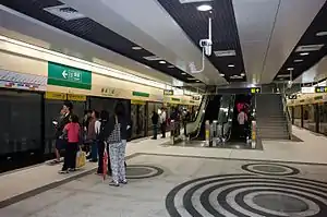 This two-level, underground station has an island platform.[3] It is located beneath Nanjing East Rd. at its intersection with Sanmin Rd.[4] It opened in November 2014 with the opening of the Songshan Line.[5]