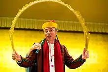 Nankin tamasudare (南京玉簾 or 南京玉すだれ, Nankin-tamasudare, lit. "Nanjing Lily") is a kind of traditional Japanese street performance. The name "Nankin tamasudare" is a play on words, as it can mean a kind of flower, as well as mean something like "a wondrous woven screen" (sudare is a kind of screen made by weaving straw with twine.)