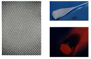 These can be used as a material for chromatographic columns, unidirectional conductors, Microchannel plate and nonlinear optical devices. Other uses are as masks for semiconductor development, including ion implantation, optical lithography, and reactive ion etching.[2][3][4]