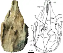 | Dorsal view of holotype skull of Nanokogia isthmia. | |