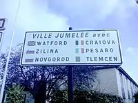 Nanterre's twin towns sign.