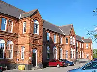 In the late 19th and early 20th centuries, several associated buildings were constructed adjacent to the workhouse. A children's home and school was built in 1879–80 at a cost of £3,300, which accommodated 60 children.[10] In 1890–91, an infirmary was built at a cost of around £4,500, which provided 70 beds for poor patients; a woman's hospital was added in 1905 at a cost of £7,000, providing a further 70 beds.[10][11][12] An adjacent nurses' home housed 15 nurses.[11] Several buildings were added in 1894–96, including a ward for tramps, a mortuary and a steam laundry.[11]