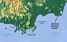 Nanwan Monkey Island (Chinese: 南湾猴岛自然保护区; pinyin: Nánwān hóudǎo zìránbǎohùqū) is a state-protected nature reserve for macaque monkeys in Lingshui county on the south coast of Hainan, the southernmost province of China. While termed an island, the reserve is actually on the Nanwan peninsula bordering the Xincun harbour on the east and south. It is accessible by China's longest over-water cable car from Xincun, spanning 2,138 metres (7,014 ft).[1][2]