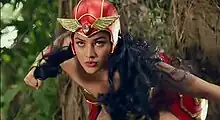 In ABS-CBN's reimagined take on the iconic costume, three common elements remains the same: the winged headpiece, the stars on the bra and the loincloth on the middle.[19] However, changes were also made including the addition of a red platform in each side of her hips. According to the costume designer Regi Cruz, he considered Jane de Leon's body frame and made sure she's comfortable in moving when doing stunts. Make-up artist Joel Atienza said that a "fresh and young" look would fit her.[20]