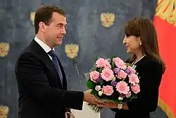 Dmitry Medvedev presents the Order of Friendship to Nargiz Pashayeva. (2011)[1]