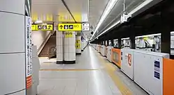 Platform 3, used for Keisei Main Line trains bound for Tokyo, is only long enough to accommodate six cars; therefore two cars of each eight-car Keisei Main Line trainset open onto Track 1, the Tokyo-bound Narita Sky Access Line platform. Keisei has installed special signage in this section of Track 1 to warn passengers not to board these cars.
