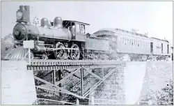 In 1890 the railway transported more than 100,000 passengers and several thousands tons of freight and luggage. An express train needed 13 minutes from Kingston to Narragansett.[6] During the Gilded Age of Newport, Rhode Island, in the 1880s and '90s, privately owned railroad coaches belonging to famous families from Philadelphia, New York and other places would arrive at Kingston Station to be transferred to the NPRR to continue on to Narragansett Pier, where their passengers would then transfer to an NPRR-owned steamboat for the short trip across Narragansett Bay to their "summer cottages" at Newport. That service ended with the sale of the steamer MANISES at the end of the 1900 season.