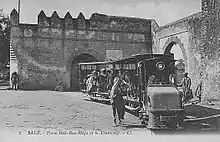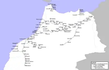 French Morocco had from 1912 to 1935 one of the largest 600 mm (1 ft 11+5⁄8 in) gauge network in Africa with a total length of more than 1,700 kilometres (1,100 mi).[1] After the treaty of Algeciras where the representatives of Great Powers agreed not to build any 1,435 mm (4 ft 8+1⁄2 in) standard-gauge railway in Morocco until the standard-gauge Tangier–Fes railway being completed, the French begun to build military 600 mm (1 ft 11+5⁄8 in) gauge lines in their part of Morocco French Morocco.