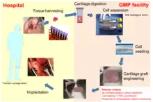 - 1 2 Fulco I, Miot S, Haug MD, Barbero A, Wixmerten A, Feliciano S, et al. (July 2014). "Engineered autologous cartilage tissue for nasal reconstruction after tumour resection: an observational first-in-human trial". Lancet. 384 (9940): 337–346. doi:10.1016/S0140-6736(14)60544-4. PMID 24726477. S2CID 12217253.
