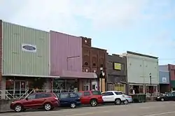 The Nashville Commercial Historic District encompasses much of the historic downtown commercial area of Nashville, Arkansas, and the major commercial center in Howard County. It is centered at the junction of Main and Howard Streets, extending eastward along East Howard, and north and south along Main Street for about one block. Most of the buildings in the district are tall single-story brick structures, some covered in stucco. They were built between about 1895 and the 1930s, with a smaller number appearing later. The area's economic activity was driven first by the arrival of the railroad, which defined the layout of the town, and then by the growth of lumber and agriculture (particularly the development of peach orchards) in the region. The oldest building in the district is 203 North Main, built c. 1895 with modest Romanesque Revival styling.[2]