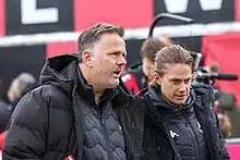 ![]() Haigh (right) with Scott Booth as coaching team for Lewes F.C. Women in 2023 | |||