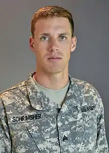 Schrimsher enlisted in the United States Army in January 2013 as an active duty motor transport operator (88M).[1] He currently holds the rank of sergeant and is a part of the World Class Athlete program, an army initiative which allows soldiers to compete and train in their respective sports with the goal of competing in the Olympics.[7] He is currently stationed at Fort Carson, Colorado.[8]