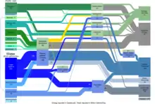 The NAWI hub is part of the DOE's Water-Energy Nexus initiative, which is described in a 2014 report that discusses the close connections between the national challenges in energy and water. The Sankey diagram of interconnected water and energy flows comes from that report.[5]