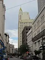 National American Bank Building is a 23-story 325 feet (99 m)-tall skyscraper in the Central Business District of New Orleans, Louisiana, [2] It was completed in 1929 and listed on the National Register of Historic Places in 1986.[1] It is topped with a distinctive 6-story octagonal tower with a golden Art Deco finial. Its address is 200 Carondelet Street. Originally a commercial building, it was renovated for use as a residential building after Hurricane Katrina.