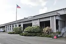 The General Services Administration opened a records center at the Sand Point Naval Air Station in 1951, serving as Seattle's branch of the National Archives.[11] The Seattle branch was upgraded to a federal records center in August 1953 and moved five times prior to the establishment of the permanent facility.[12] The new facility near Sand Point was located in a 59,000-square-foot (5,500 m2) Navy warehouse that was built in 1949 and underwent extensive renovations that cost $397,000.[13][14] It was dedicated as the Federal Archives and Records Center on November 16, 1963, in a ceremony that included speeches from Governor Albert D. Rosellini and U.S. senators Henry M. Jackson and Warren G. Magnuson, who praised the facility as "one of the finest centers in the nation".[15] By 1969, the Seattle Federal Records Center had grown to 170,000 cubic feet (4,800 m3) of material and 18 full-time employees.[16] A portion of the collections was destroyed in a fire in 1974.[14]