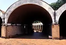 The 1962 Cuban Missile Crisis provoked an international incident that posed serious challenges for Cuba. In addition, setbacks across the Socialist world (the assassination of Congolese leader Patrice Lumumba in 1961, the coup against Algerian President Ahmed Ben Bella in 1965, the Sino-Soviet split, the newly launched guerrilla war in Vietnam), marked a turning point and created a sense of isolation and embattlement in Cuba facing the Cold War alone in the Caribbean. Production and defense became primary national priorities and the population was militarized. The government began to consider the National Art Schools to be extravagant and out of scale with reality.[16] Construction of the art schools slowed down, as more and more of the workforce was now redirected to areas considered of greater national priority. The architects were also encountering criticism. Many in the Ministry of Construction did not trust the Catalan vault as a structural system. There was also a certain amount of envy on the part of many of the ministry bureaucrats toward the comparatively privileged conditions under which Porro, Gottardi, and Garrati were working.[17] These tensions would prove to escalate.