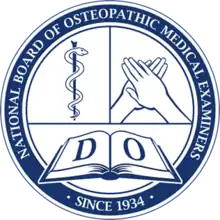 The National Board of Osteopathic Medical Examiners (NBOME), founded in 1934 as the National Osteopathic Board of Examiners for Osteopathic Physicians and Surgeons, Inc.,[1][2] is a United States examination board which sets state recognized examinations for osteopathic medical students and began administering exams in February 1935.[2][3] The NBOME is an independent, nonprofit organization and is headquartered in Chicago, Illinois and Conshohocken, Pennsylvania.[4] The NBOME states that its mission is "to protect the public by providing the means to assess competencies for osteopathic medicine and related health care professions."[5] The NBOME conducts research to monitor the quality of the COMLEX examinations.[1]