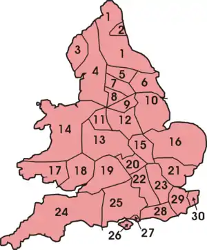 Castle proposed forming regional transport authorities, which would take over the THC subsidiaries and municipal transport undertakings in their area, and would also have the power to acquire private bus operators.[1] However, in November 1967 British Electric Traction (BET) unexpectedly offered to sell its bus operations to the government.[2] BET, who had been the only major private bus operating group, received £35 million for its 25 provincial bus companies and 11,300 vehicles.[3] The deal meant that the state or municipal bus operators now operated some 90% of scheduled bus services in England and Wales.[1] Instead of forming the regional authorities, the government published a white paper proposing the merger of the THC and BET organisations into a single National Bus Company.[4][5]