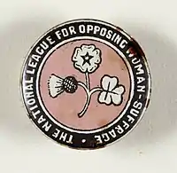 The National League for Opposing Woman Suffrage was founded in London in December 1910 to oppose the extension of the voting franchise to women in the United Kingdom. It was formed as an amalgamation of the Women's National Anti-Suffrage League and the Men's League for Opposing Woman Suffrage. Its first president was Lord Cromer, and its executive committee consisted of seven men and seven women. In March 1912 Cromer was replaced by Lord Curzon and Lord Weardale as joint presidents. It continued the publication of the Anti-Suffrage Review produced originally by the Women's National Anti-Suffrage League. In 1912 the first Welsh branch opened in Bangor, following an upsurge in militant action in the country.[1]