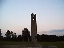 The Khatyn national state memorial of the Republic of Belarus is the central war memorial of Belarus for all victims of the German occupation during World War II. It commemorates particularly the more than 600 "burnt villages" which, together with their inhabitants, were destroyed by the Germans throughout the war. The Khatyn massacre was one of them; the village lies about 60 kilometres north of Minsk on the road to Vitebsk in the Logoisky district, in the Minsk Region.[1]
