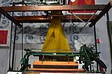 The Silk Gallery Hall depicts the history of the Lehigh Valley Silk industry. Within this exhibit, you are greeted by the most prominent artifact, the Jacquard loom.[8] This loom was used in conjunction with the Scalamandre Silk Mill located in Long Island City, New York.[8] It was utilized to produce the fabric for the White House for nearly eighty years up until Bill Clinton's presidency.[8] One particular piece of fabric that was formed for John F. Kennedy holds a place in this exhibit.[8]