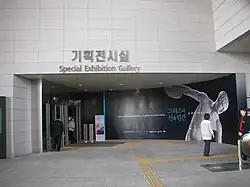 The museum is situated on what used to be a golf course that was part of the Yongsan Garrison, the central command of the United States Forces stationed in Korea. The US Army returned a part of the land in 1992 to the Korean government, which went on to become the Yongsan Family Park. While the plans for the museum inside the park began in 1993, its opening was delayed repeatedly by a helipad, which was eventually relocated in 2005 by agreement. The museum contains over 310,000 pieces[1] in its collection with about 15,000 pieces on display at one time. It displays relics and artifacts throughout six permanent exhibition galleries such as Prehistory and Ancient History Gallery, Medieval and Early Modern History Gallery, Donation Gallery, Calligraphy and Painting Gallery, Asian Art Gallery, and Sculpture and Crafts Gallery. It is the sixth largest museum in the world in terms of floor space, now covering a total of 295,551 m2 (3,180,000 sq ft).[4]