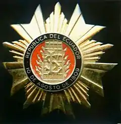 It was restored by Ecuadorian President Camilo Ponce Enríquez on August 10, 1959. Finally the law was restructured on June 4 of 2001, during the government of president Gustavo Noboa Bejarano.[2] Nowadays it is the highest award granted in Ecuador, both in civil and military fields.