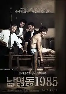 National Security (Korean: 남영동 1985; RR: Namyeong-dong 1985) is a 2012 South Korean prison drama film based on the memoir by Kim Geun-tae, a democracy activist who was kidnapped and tortured by national police inspector Lee Geun-an for 22 days in 1985 during the Chun Doo-hwan regime.[2][3][4][5][6]