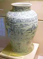 8 Blue and white ceramic jar with swan patterns 15th century