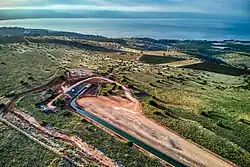 The advanced Eshkol Water Filtration Plant, completed in 2007-2008 by Mekorot,[8] the fourth largest in the world,[9] is located at the southwestern edge of the Beit Netofa Valley. The water first passes through two large reservoirs. The first of these is a sedimentation pond, holding about 1.5 million m³ of water, which allow suspended matter in the water to settle to the bottom, thus cleaning the water. The second reservoir is separated from the sedimentation pond by a dam and has a capacity of 4.5 million m³. Here the inflow of water from the pumping stations and open canals is regulated against the outflow into the closed pipeline. The amount allowed through depends on water demand. A special canal bypasses the reservoirs allowing water to travel straight through the carrier.[1] Before entering the closed pipeline, final tests are performed on the water in the carrier, with chemicals added to bring the water to drinking standards. At the end of the filtration process the water enters the 108" Pipeline, which transports it 86 km to the Yarkon-Negev system near the city of Rosh HaAyin to the east of Tel Aviv and Petah Tikva.[1]