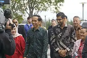 The batik shirt for men is often considered as an Indonesian national attire, as worn here by Indonesian President Joko Widodo (left) and Google CEO Sundar Pichai.
