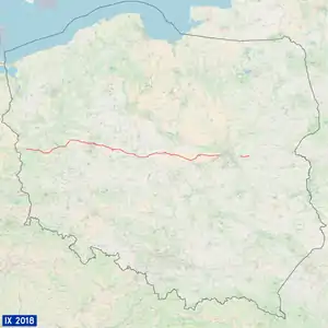 National road 92 (Polish: droga krajowa nr 92)[2] is a route belonging to Polish national roads network, which serves as an alternative route parallel to motorway A2. The road has one lane per direction on the majority of its length. Before the A2 motorway was constructed, it had served as the main connection between Warsaw, Poznań and the Polish-German border as DK 2; because of this, the route is sometimes referred to as "starą dwójką" (lit. "old two").
