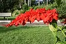 The Chaconia, also known as the "Pride of Trinidad and Tobago" or "Wild Poinsettia" is an indigenous flower known by its long sprays of magnificent vermillion. Coincidentally, this flower blooms on every anniversary of our Independence Day (August 31, 1962).[5][6]