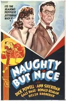 Naughty but Nice is a 1939 Warner Bros. musical comedy film directed by Ray Enright, starring Dick Powell and Ann Sheridan and featuring Gale Page, Ronald Reagan, and Helen Broderick, with Allen Jenkins, ZaSu Pitts, and Maxie Rosenbloom in supporting roles. The original story and screenplay were written by Richard Macaulay and Jerry Wald, and the film includes songs with music by Harry Warren and lyrics by Johnny Mercer, as well as music adapted from Bach, Beethoven, Liszt, Mozart, Robert Schumann, and Wagner. Ann Sheridan did her own singing in the film, except for song "In a Moment of Weakness", in which she was dubbed by Vera Van.