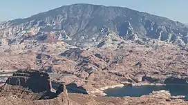Navajo Mountain is a prominent free-standing laccolith, a dome-shaped body of igneous rock that intruded into sedimentary layers and lifted up the overlying layer. The igneous rock at the core of the mountain is wrapped in sedimentary layers. Such igneous intrusions have been exposed by erosion and well studied in similar mountain ranges on the Colorado Plateau, such as the Henry Mountains, the Abajo Mountains, and the La Sal Range.[4]