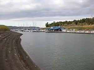 Navajo State Park is a state park of Colorado, USA, on the north shore of Navajo Lake. Touted as Colorado's answer to Lake Powell, this reservoir on the San Juan River begins in Colorado's San Juan Mountains and extends 20 miles (32 km) into New Mexico. Its area is 15,000 acres (6,100 ha), and it has 150 miles (240 km) of shoreline in two states. Park activities include boating, houseboating, fishing, camping, and wildlife viewing.[2] There is a New Mexico state park at the southern end of the lake.