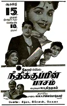 Neethikkupin Paasam (transl. Law First, Affection Next) is a 1963 Indian Tamil-language legal drama film, directed by M. A. Thirumugam and produced by Sandow M. M. A. Chinnappa Thevar. The film stars M. G. Ramachandran, B. Saroja Devi and M. R. Radha. It was released on 15 August 1963. The film was remade in Telugu as Thandri Kodukula Challenge.