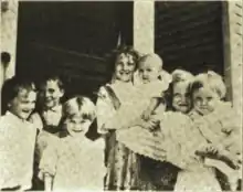 Neighborhood House had its beginning in 1897 when Harriet Van Der Vaart thought to give to the girls of her Sunday School class a chance to be really useful. She hired a small dwelling house and with the help of the girls, started a kindergarten. Then came clubs and classes and parties and with these, the need of more room. From the beginning, Van Der Vaart had the assistance of co-founders, Anna E. Nicholes and her sister, S. Grace Nicholes, women who had a choice between lives of ease and lives of labor, and who chose the latter.[4]