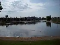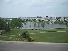 Decorative storm reservoir in the east Regina subdivision of Windsor Park, characteristic of both eastern and northern new residential subdivisions