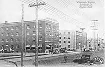 Europeans became established around the former Market Square (now the location of the Regina city police station [14] on Osler Street between 10th and 11th Avenues) by 1892. German, Ukrainian, Romanian and Serbian religious, secular and educational institutions and services were early established in the neighbourhood — including St Nicholas's Romanian Orthodox Church (established in 1902[15]), the oldest Romanian Orthodox parish in North America; St George's Cathedral (founded in 1914[16] though the present building dates from the early 1960s), the episcopal seat of the Romanian Orthodox Bishop of Regina; and the now long-demolished Holy Trinity Serbian Orthodox Church and the Ukrainian Orthodox Church of the Descent of the Holy Ghost, both formerly on Winnipeg Street. St. Mary's Roman Catholic Church on Winnipeg Street between Victoria and 13th Avenues assumed its name when the downtown parish now called Blessed Sacrament, whose building was originally on Cornwall Street north of Victoria Park and is now on Scarth Street south of the Park, was renamed. Beth Jacob Synagogue, originally established in 1905[17] and now re-located to South Regina, was originally also in Germantown.