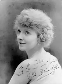 Briercliffe left the D'Oyly Carte company in January 1918 and appeared in London in the musical comedy Pamela, at the Palace Theatre with Lily Elsie and Owen Nares.[10] She then took over the role of Joy Chatterton in the long-running musical The Boy at the Adelphi Theatre.[5][11] She rejoined D'Oyly Carte for the 191920 London season, when the company returned to London for the first time in a decade, at the Prince's Theatre, playing all her former roles.[12] In 1920 she returned to musical comedy in London, appearing with Jack Buchanan in Wild Geese by Ronald Jeans and Charles Cuvillier;[13] as Dulcenea in Oh! Julie, composed by H. Sullivan Brooke and Herman Darewski, at the Shaftesbury Theatre;[14] and as the Shepherdess in the children's play, The Shepherdess Without a Heart at the Garrick Theatre, of which The Times wrote, "Many a young heart must have been lost yesterday afternoon to Miss Nellie Briercliffe. … She looked delightful, she sang sweetly, and she acted so prettily that there was a general sigh of regret when she became a china figure once again."[15]