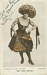 When the Duke and Duchess of York came to Australia to open the first federal parliament, Stewart sang the ode "Australia" at the beginning of the musical programme.[11] In February 1902 she had one of the greatest parts in her career, Nell Gwynne in Sweet Nell of Old Drury.[9] She became known as "Our Nell" and "Sweet Nell".[12] Other comedy parts followed in Mice and Men and Zaza. It was in the last play that Stewart reached her largest salary, £80 a week.