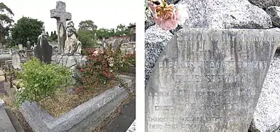Stewart died, aged 72, on 21 June 1931 at her residence, "Den o' Gwynne", Thompson Street, Mosman, New South Wales. Her illness was reported as short and the result of heart trouble and pleurisy.[16] Crowds gathered in Sydney for her funeral on 24 June 1931. People lined the streets and thronged around St. James' Church, where the first of a number of services was held. Stewart's remains were cremated at Rookwood Necropolis in Sydney after another service, and her ashes were taken to Melbourne.[17] After a further series of services attended by more crowds, her ashes were placed in the family grave at Boroondara General Cemetery in suburban Kew on 27 June 1931.[18] She was survived by her daughter, Nancye.