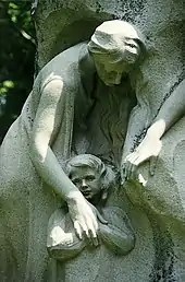 Nellie Verne Walker was born in Red Oak, Iowa, the daughter of Everett Walker, a stone carver and monument maker, and Rebecca Jane Lindsay Walker.[1][2][3] By the age of 17 she was allowed to use her father's tools and began making her own sculpture in her father's monument shop in Moulton, Iowa. Her first noteworthy work was a bust of Abraham Lincoln that was displayed at the Columbian Exposition in 1893,[1] as an exhibit in the Iowa Building there, labeled "The work of an Iowa Girl". She was to return to the theme of Lincoln again in her career. Unable to afford to go to art school, Walker worked as a legal secretary for six years before she could obtain enough money to attend the Art Institute of Chicago.