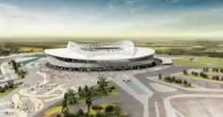 Nelson Mandela Stadium (Arabic: ملعب نيلسون مانديلا) is a sports stadium located in Baraki, suburb of Algiers, Algeria. The value of construction work for the stadium cost around 300 million euros. With a seating capacity of 40,784, it will be used as an athletics track and be the first stadium in Algeria, to be eligible to host all the matches organized by FIFA including the World Cup and the second stadium entirely covered in Algeria after the new Miloud Hadefi Stadium in Oran. The Nelson Mandela stadium which extends over a total area of 68 hectares, including 5 hectares built, includes all the infrastructure essential to the organization of international football events.[1]