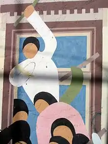 ![]() Bailarines con volantines (detail); mural nº16 of the es:Museo a Cielo Abierto de Valparaíso | |
