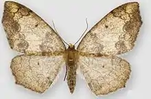 The species is similar only to Neotherina callas, which it can be distinguished from by its yellowish-brown color and larger size.[1] Adults are on wing year round.