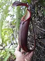 An upper pitcher of a plant resembling the type specimen of Nepenthes beccariana, found near Sibolga, Sumatra
