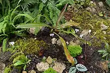 Plants that resemble N. beccariana and may be conspecific with it grow along the road from Sibolga to Tarutung in North Sumatra.[2] This unidentified taxon is sympatric with N. ampullaria, N. gracilis, N. rafflesiana, N. reinwardtiana, and N. tobaica.[2] A putative natural hybrid with N. sumatrana has been recorded.