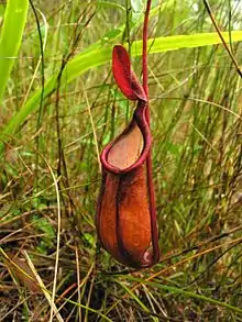 Nepenthes kampotiana is a tropical pitcher plant native to southern Cambodia, eastern Thailand, and at least southern coastal Vietnam.[3][4] It has an altitudinal distribution of 0–600 m above sea level.[5] The specific epithet kampotiana refers to the Cambodian city of Kampot, close to which the first specimens of this species were collected.[3]